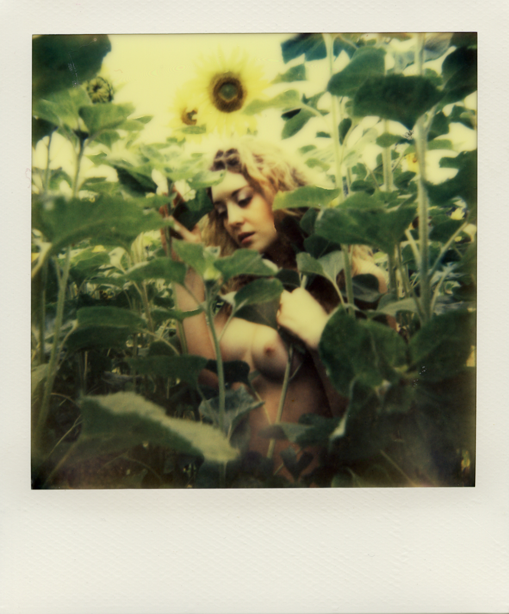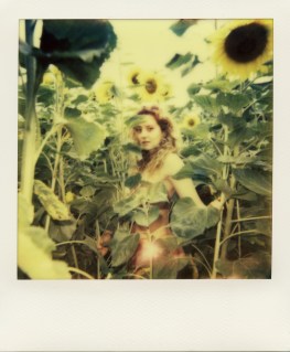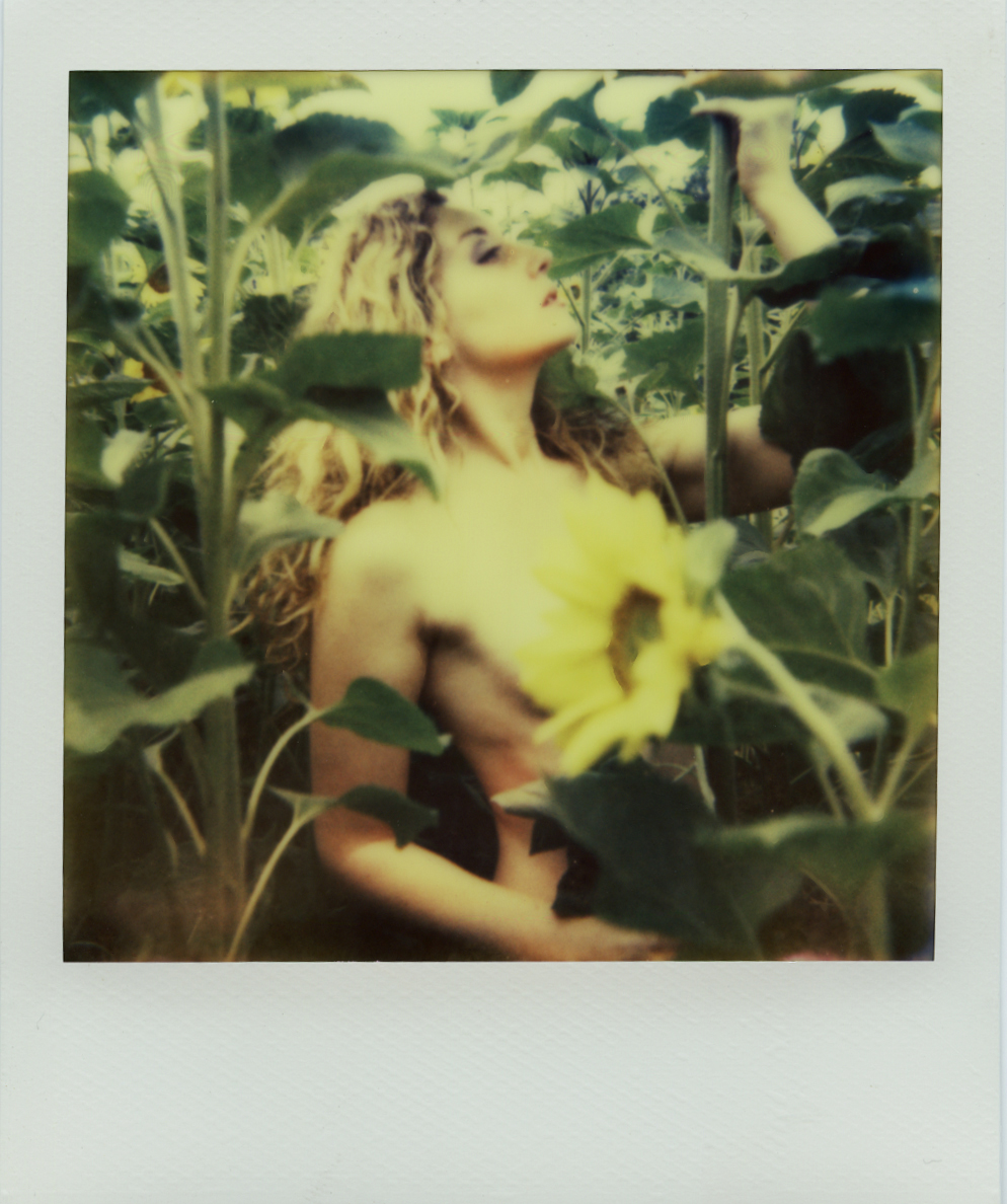 Anyway, one of the highlights of the trip was spotting a field full of luscious tall, yellow, happy sunflowers just off the side of a road… so we had to shoot there. I’ve been sent some colour polaroids already from what we did there (they’ve had no tone or contrast adjustments), and also a few from an old castle ruin we worked at on the first day and from the Black Forest on the second day, with the processed film shots to come soon. Colour polaroid is so magical. It works so well for a 70s hippie sunflower feel particularly in the first two shots, I reckon, and looks kinda mystical and pretty by the castle, with the pink orbs of light! The ones in the Black Forest came out really strange and dreamy… Watching these develop was very exciting!