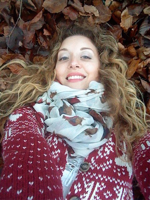 We did lots of other little sets as well, including one where I was asked to lie outdoors on a huge, damp (but blissfully comfortable) bed of leaves, acting as though I was taking pictures of myself on my cameraphone. So I did…