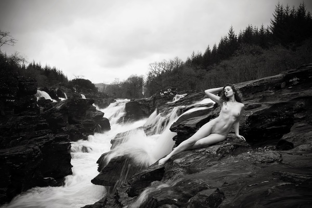 Later, we politely ignored the ‘danger, slippery rocks!’ signs to get these shots at the Falls of Orchy. I love the strong levels of contrast in these images (I’ve got such a thing for rich blacks), and my pale skin really pings out of them. Several quick poses here, but I think the first is my favourite. We got to Glasgow late after a quick stop for pizza at Dominoes. I suppose I don’t eat there often as I apparently broke normal pizza-buying ettiquette by enquiring about the herbs (i.e. do they count as one of the toppings, since they are listed? What are they?). I started requesting basil and oregano, and was met with a baffled look. Apparently, herbs are just herbs. All the herbs in the world ever go on the pizza, maybe. Fine. It tasted good.