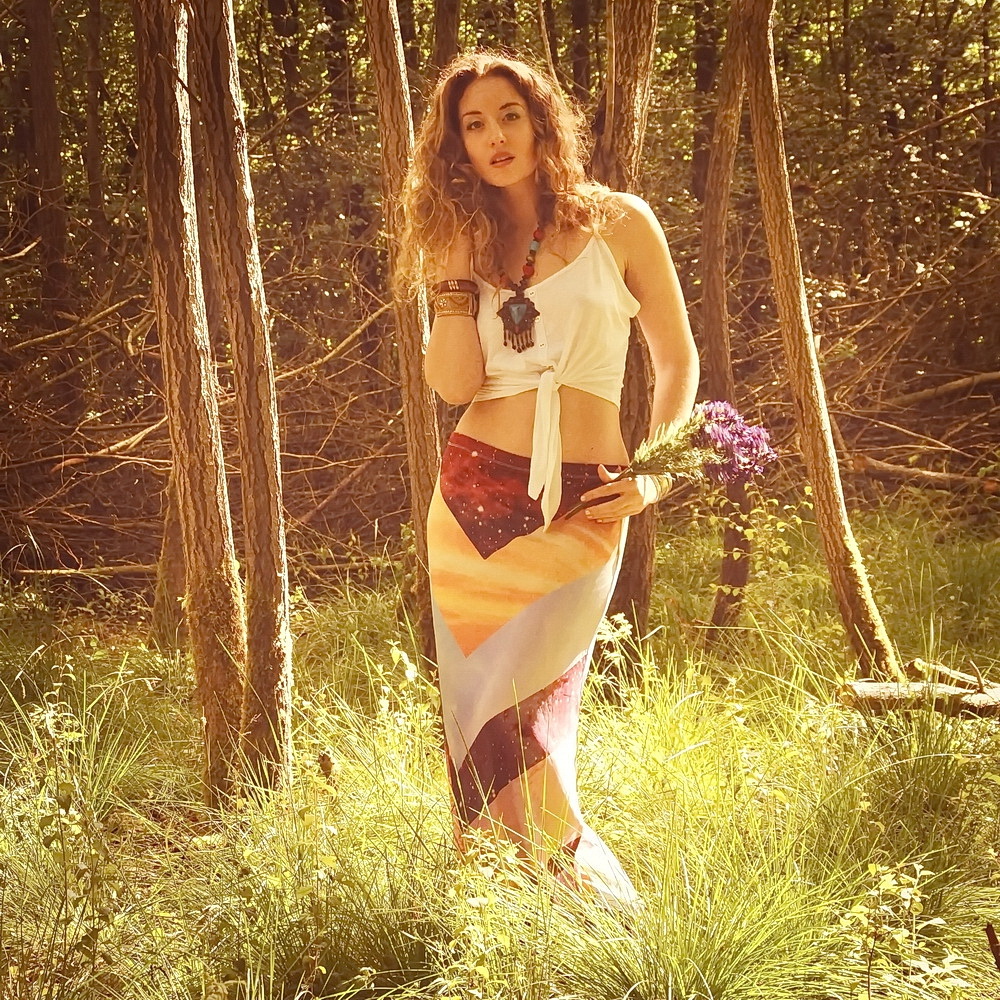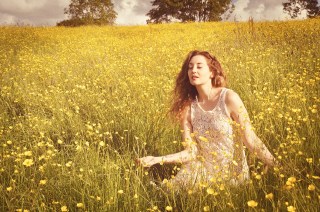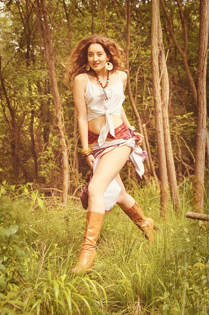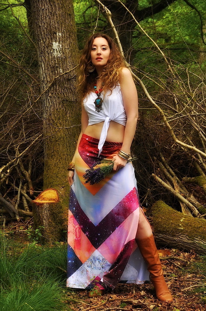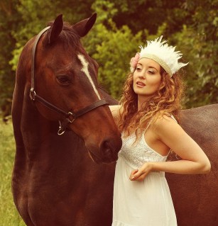 I was going to serve up some mountainous goodness next, but instead, I have been distracted by yesterday’s longest day-ness, such that I’m going to quickly squeeze in a few sunny shots from a recent leisurely afternoon spent once more with Karen Jones. We’ve worked together many times (and will be doing so again soon), and she’s another photographer who’s great at coming up with different ideas each time, throwing new props at me and even letting me pose with a horse again (this time it was the rather pretty-headed Joss, who Karen’s husband kept reminding me was ‘just a big dog’.). Joss loves mints. And grass. 🙂 I was at the same time having serious befuddlement over whether or not to keep a recent purchase, my ‘cosmic skirt’ (so called, obviously, because it has planets and stars on it, as all good skirts must..), so I thought I’d put it on and see how it photographs for some gypsy bohemia, avec a bunch of Karen’s lavender (and then I thought I’d imagine how that might translate to some hot beach somewhere someday..). We then found a little moss-covered nymph perch, for which Karen covered my head in a wreath of rose buds for a few quick shots… And then, it would have seemed a real shame not to dunk ourselves amidst a field swimming in buttercups.