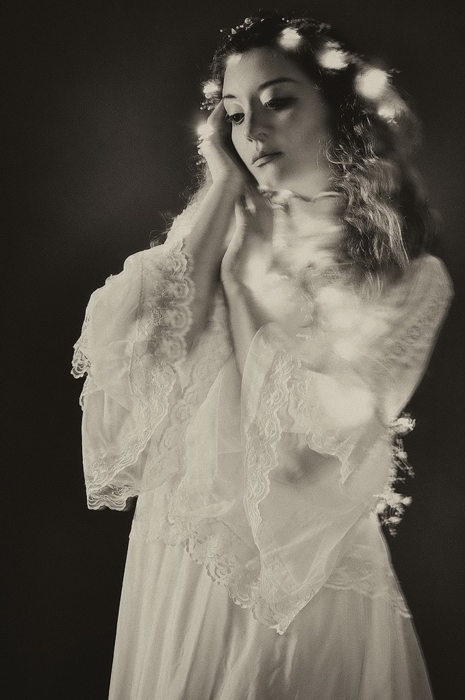 ‘Laced Light’; My vintage Victorian-style wedding dress, plus some lights weaved into my hair!