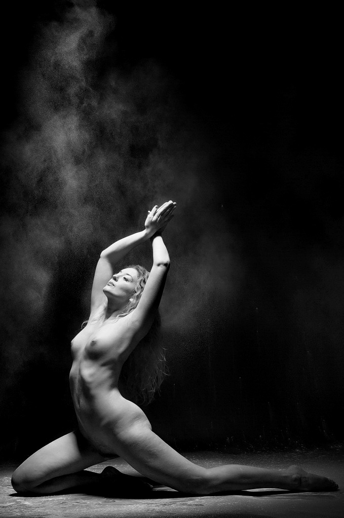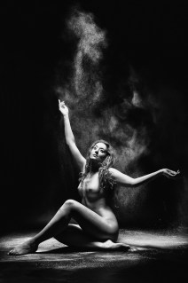 ‘The Powder Room’; Karen wanted to do something a bit ‘different’, so I made asked her to bring some flour so we could make a mess. In the end we used talcum powder, and I smelled utterly amazing afterwards! I love how well the fine powder shows against the black; it looks a bit like smoke, floating in wisps around me!
