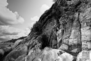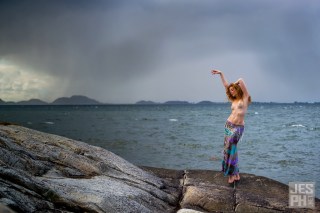 I know I sound like I’m gushing, but I just felt so incredibly FREE during this shoot. Billy just left me to prance about along the shore line, in and out of waves, jumping off rocks and strolling around in front of his camera. He was a fair distance away for a lot of the shots, and took millions of frames, hoping to catch the ‘moment’ of whatever I was about to do at any given time, since we couldn’t really communicate well in the conditions. So in some ways I felt, for a lot of the shoot, like I was alone in nature, just experiencing the place in all its head-knocking beauty. I’m so grateful for Billy for allowing me to feel that way, and for framing so much open space in many of the shots that reflect that state of mind. Looking at these shots makes me feel so happy.