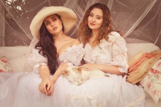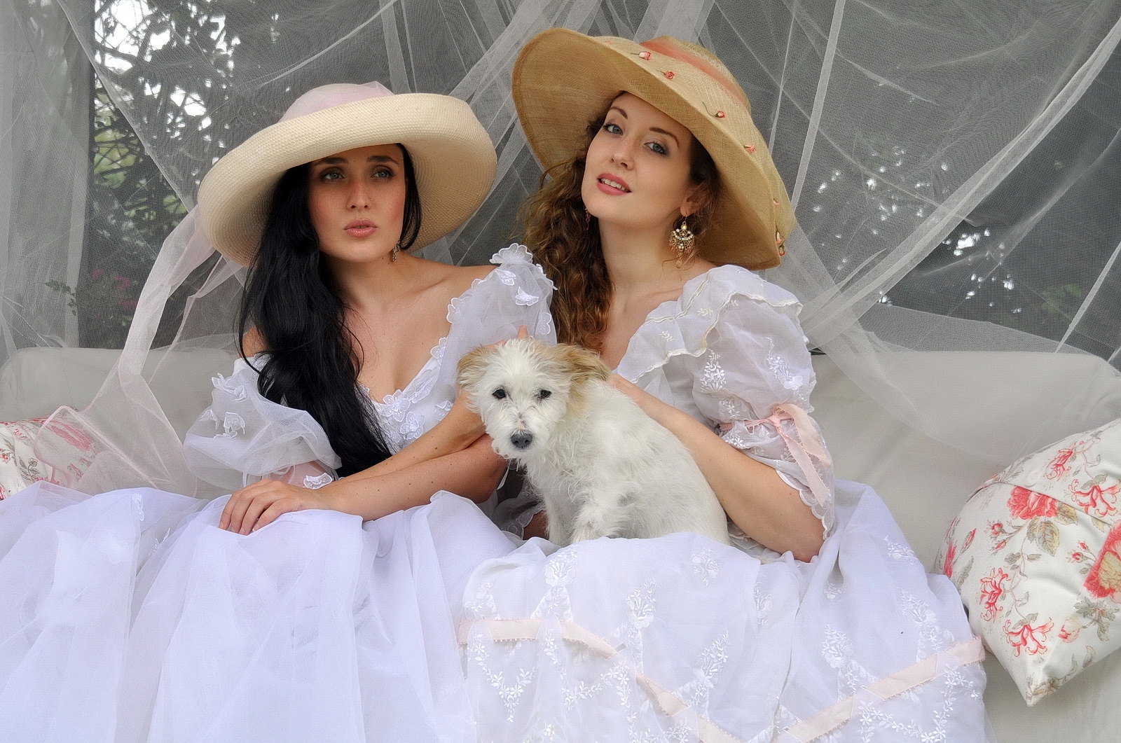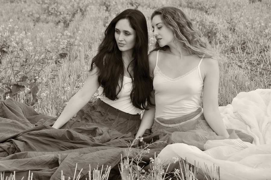 First, there was a shoot alongside the utterly beautiful Leah Axl, who is one of the nicest people I’ve met in this industry as well has having one of those faces that just can’t be photographed badly. For that, Karen dressed up a swing seat in her back garden, and we posed as Edwardian ladies, sipping tea and balancing bird cages with lap-dog Pip (the pet extra), before heading outdoors into the on-the-doorstep countryside, dressed partly in each other’s clothes, for some bohemian adventures with sheep (not in shot…).