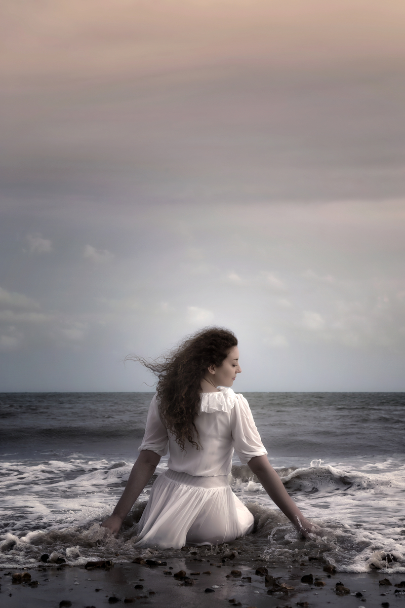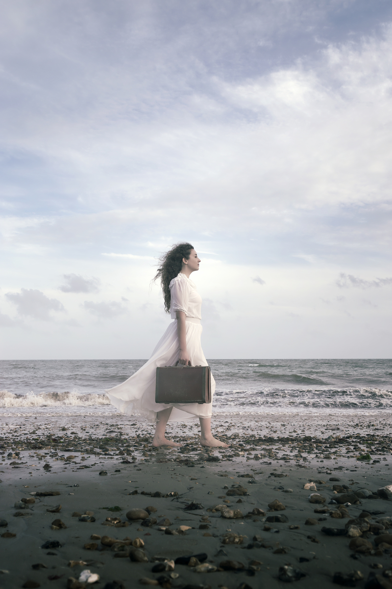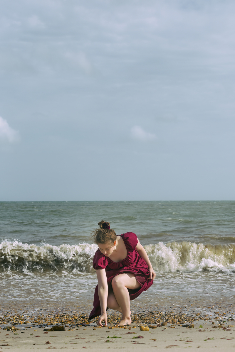 Later, I’m really not sure what would have looked more strange to the woman strolling past along the beach, me sitting nude on a wooden chair on the sand, or Peter using a house-hold broom to meticulously smooth out the sand around me. He didn’t quite succeed in sweeping up the whole beach, but we did make these images, the first of which is called ‘Amphitrite’: